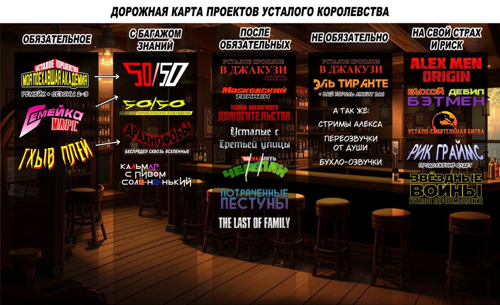 Недавно «Усталое королевство» обновило «дорожную карту» — то бишь, гайд по порядку и приоритету просмотра. Если не считать необязательные и «на свой страх и риск», всего 14 проектов — вдвое меньше, чем было обещано за последние годы…