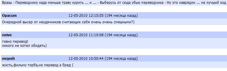 Типичная реакция завсегдатаев торрент-трекера Рутор на очередную заливку смищного перевода от не самой востребованной студии